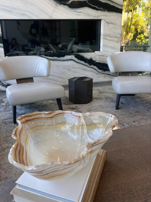 Hand-Carved Amber Onyx Bowl