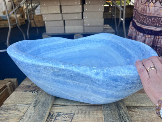 Hand-Carved 19" White Onyx Bowl from Mexico