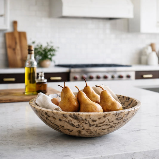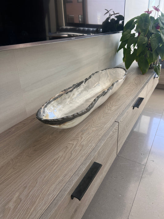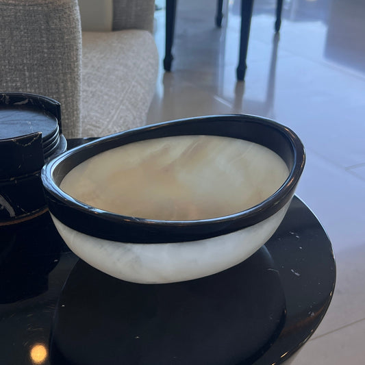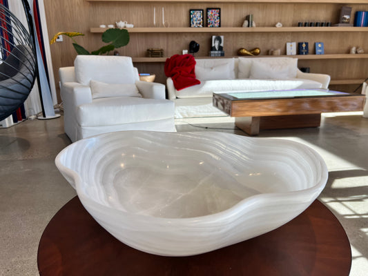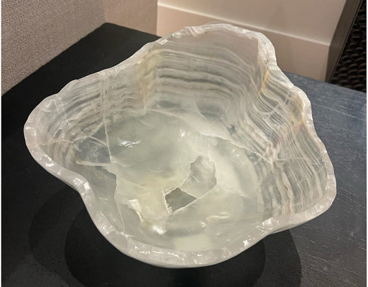 Hand Carved White Onyx Decorative Bowl – Natural Stone Centerpiece