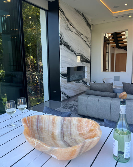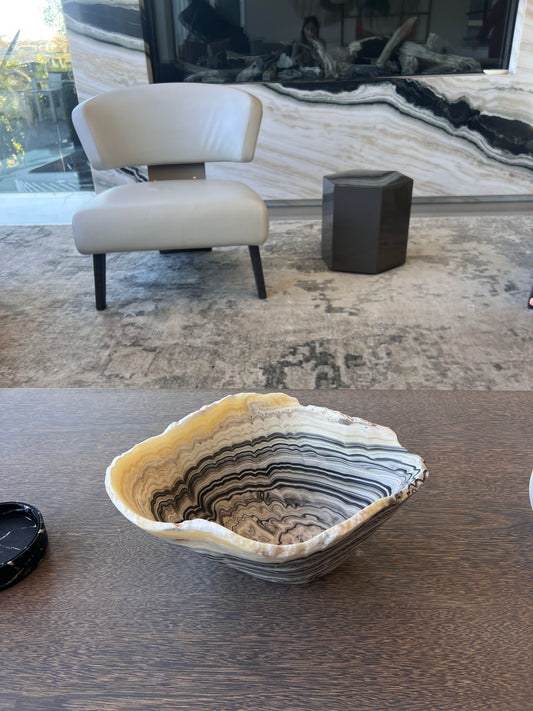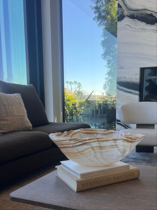 Hand-Carved Amber Onyx Bowl Centerpiece