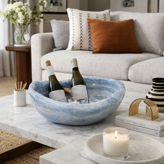 Blue Calcite Decorative Bowl – Large Stone Centerpiece
