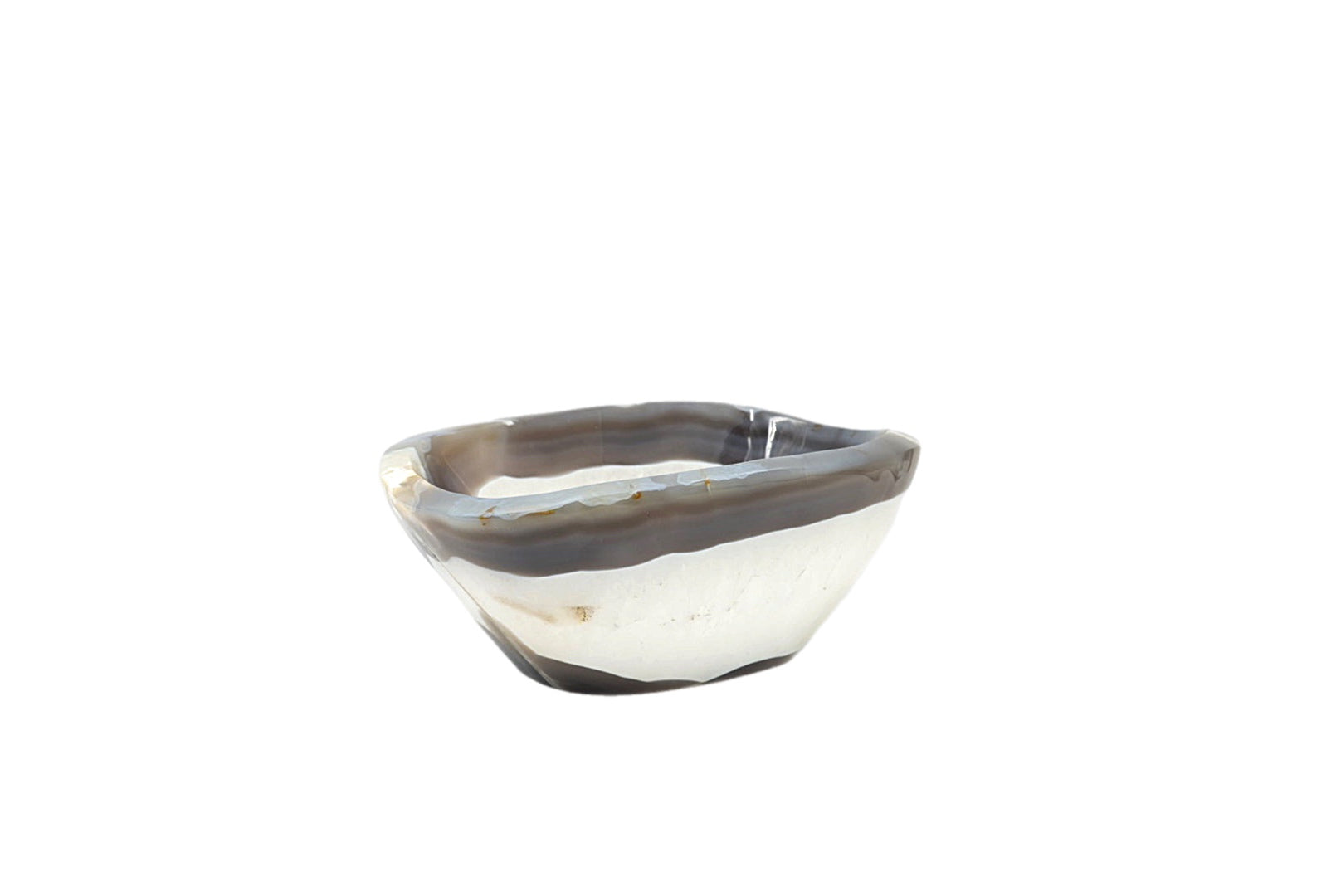 Style it solo as a sculptural centerpiece on a dining table, or credenza. Or use it functionally as a luxe catchall for keys, jewelry, or daily rituals. The powerful contrast and gentle curve give it gallery-level presence, while the soothing properties of agate and the clarity-enhancing energy of quartz add quiet grounding to your home.
