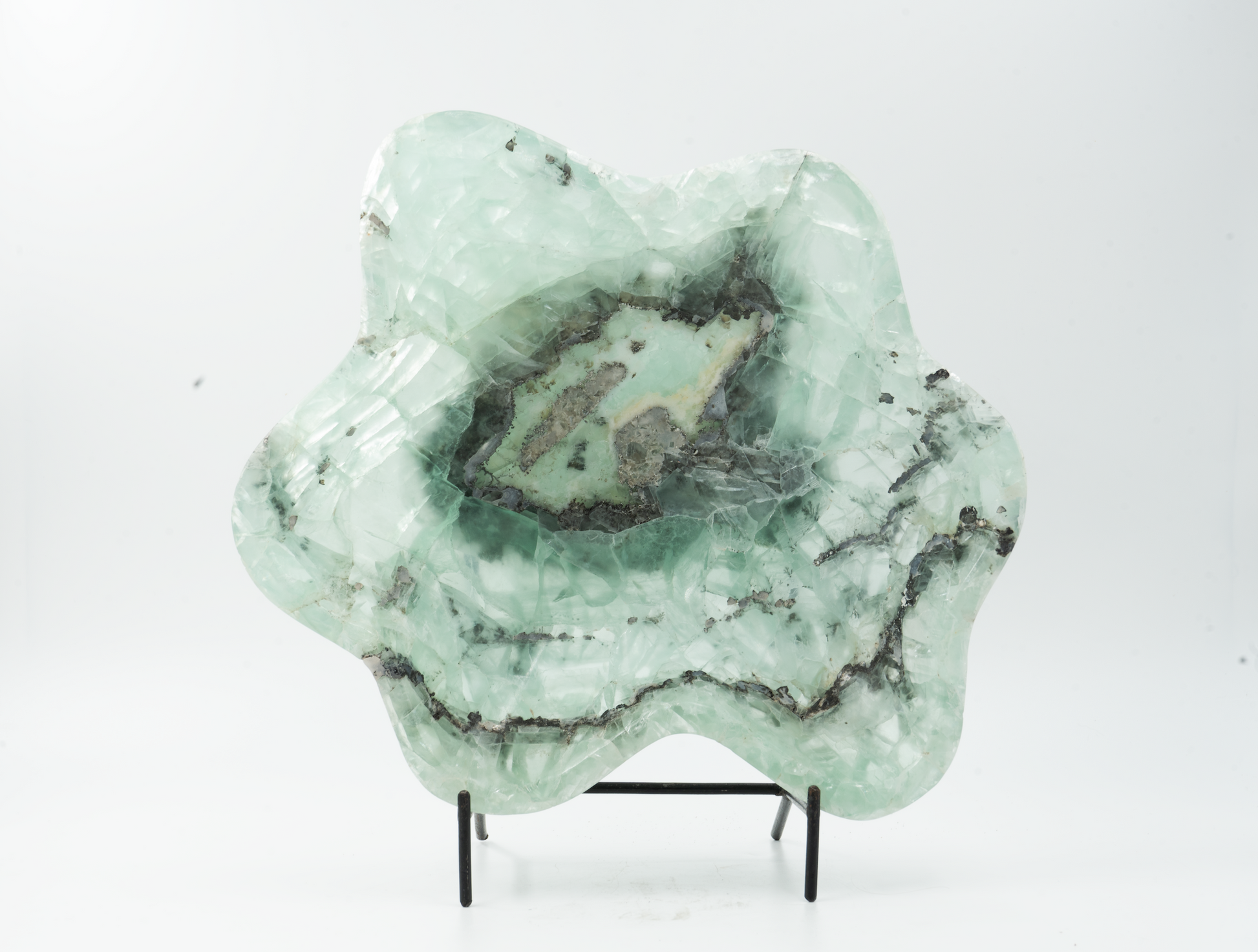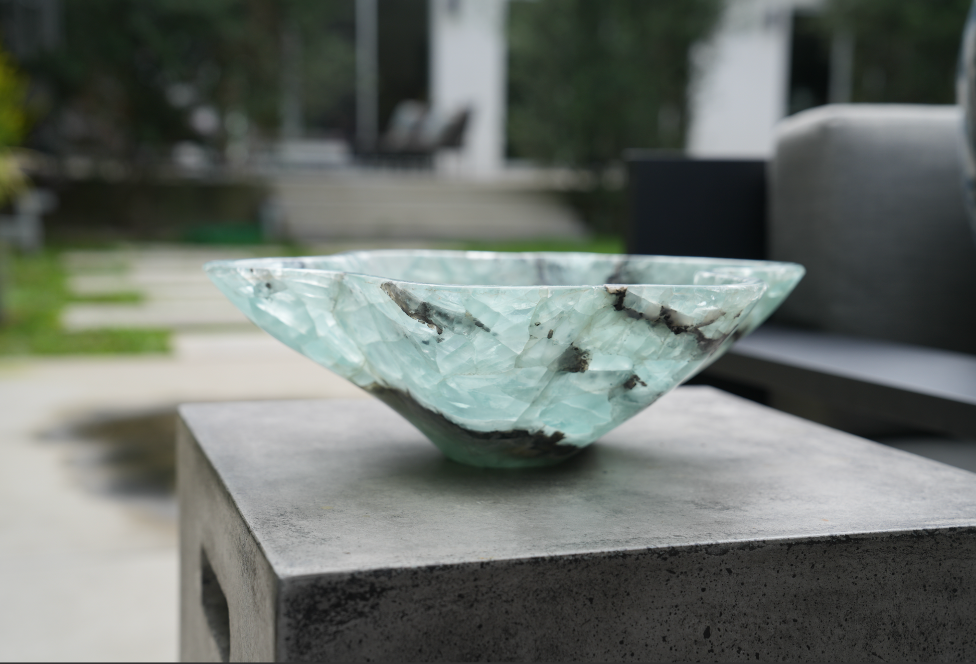 The soft curves of this hand carved Fluorite bowl enhances every space it lives in. Beautiful Rainbow Fluorite emits an energy that boosts our mental clarity and promotes peace of mind. It has a tendency to transform negative energy into positive energy. The word Fluorite comes from the Latin word flux, which means to flow interchangeably.