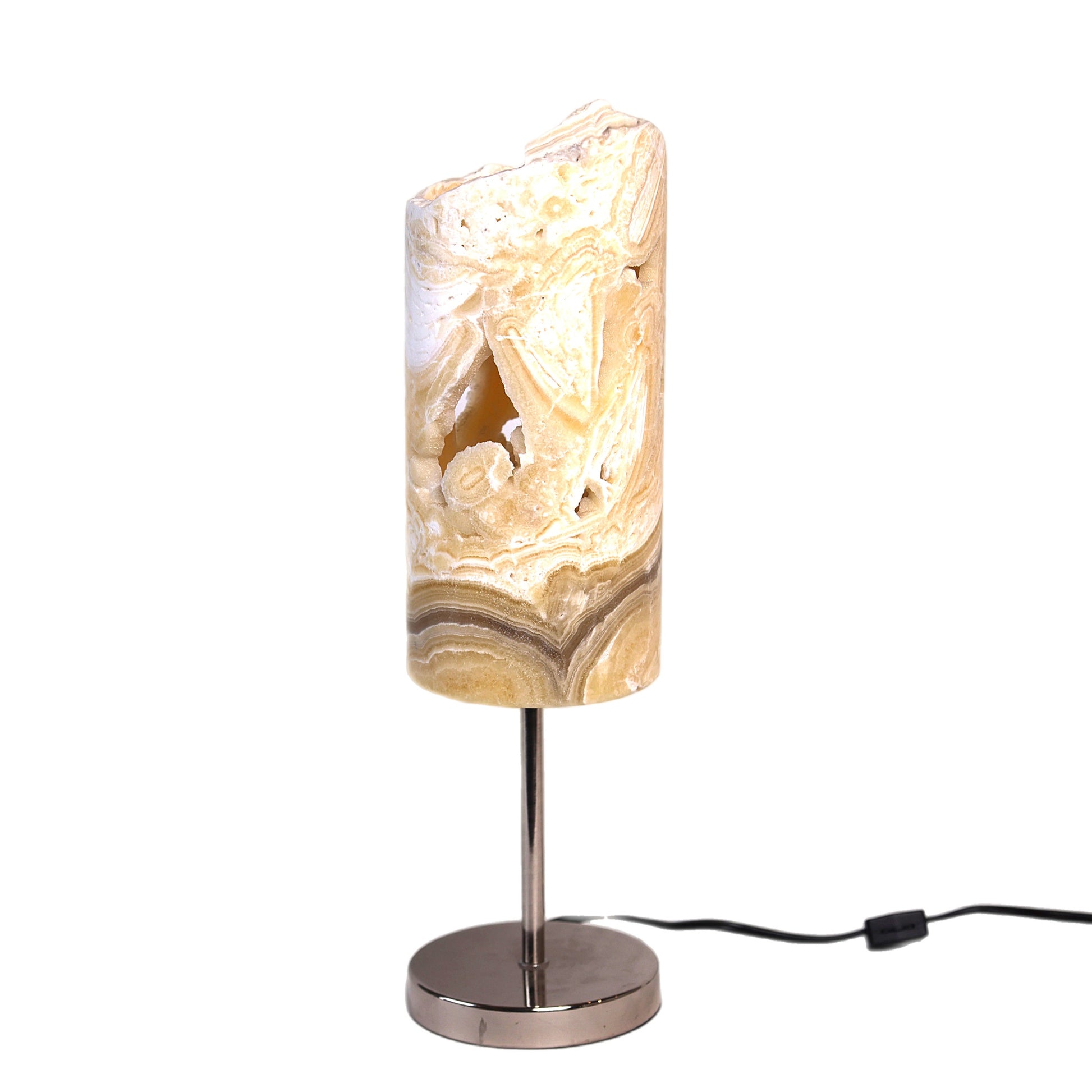 With a definite 70s vibe, this rich yellow and earthone banded onyx lamp was a fun find.